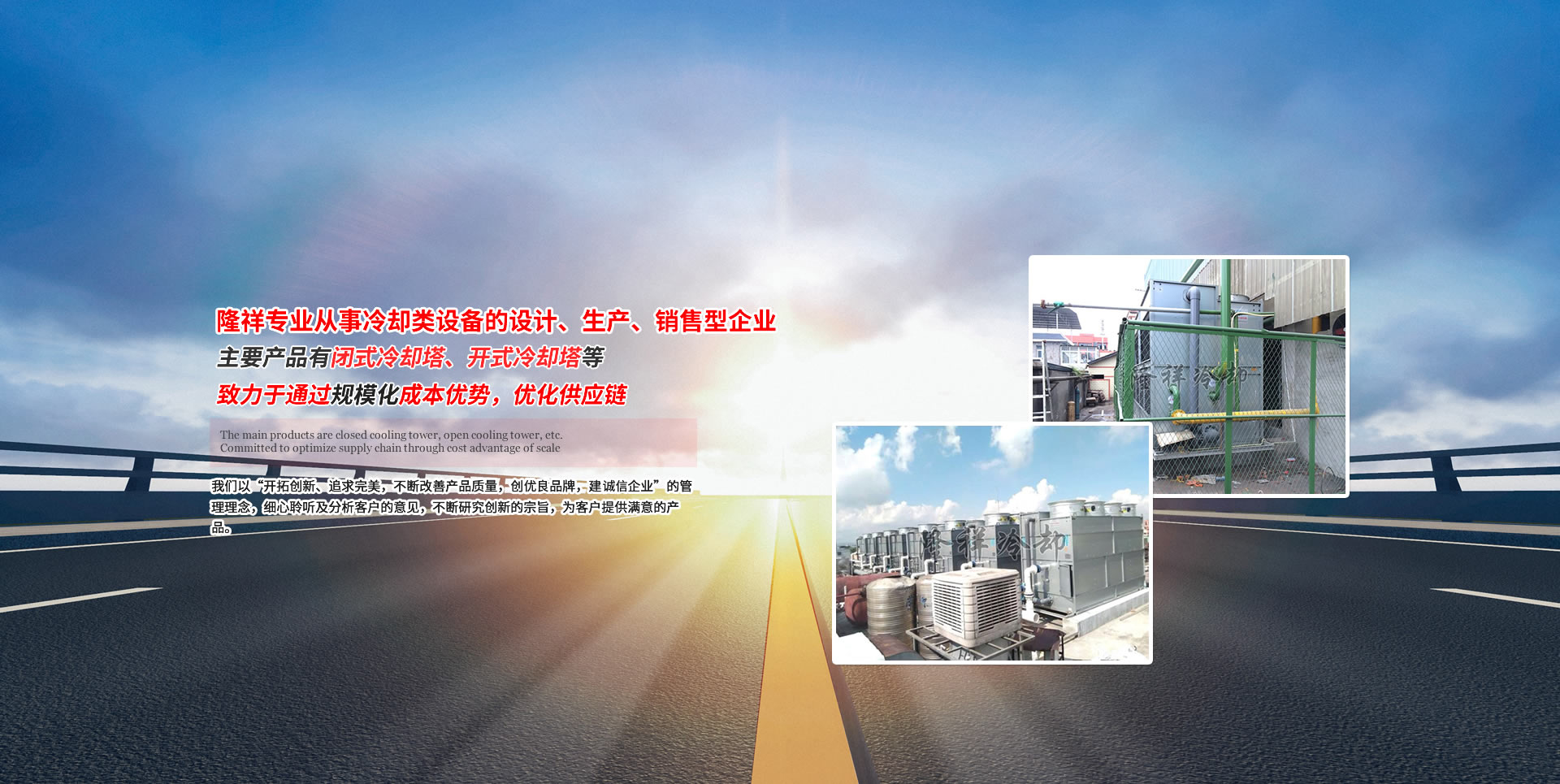 无锡隆祥制冷设备有限公司是一家从事冷却类设备的设计、生产、销售型企业,主要产品有闭式冷却塔、开式冷却塔、蒸发型冷凝器等。公司一直致力于通过规模化成本优势,优化供应链,以国内名优材料位置,生产出性价比更高的产品。