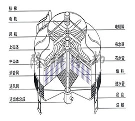 热水经旋转洒水系统均匀散布于胶片上,再由顶部轴流式风扇将干燥空气于底部带上,使热水与空气对流接触而产生挥发,令水温下降。冷却水由底盆收集后经水泵运行至热源作循环再用。